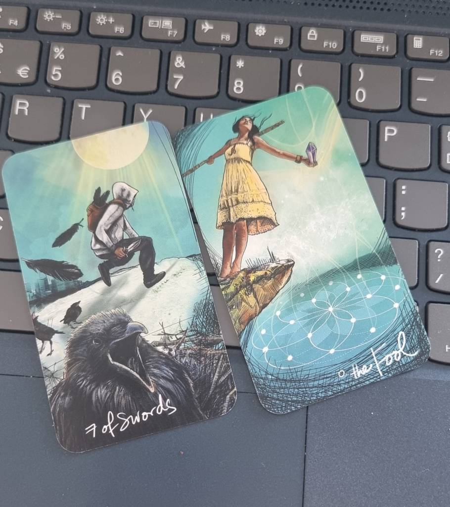 The 7 of swords suggests being on the lookout for deceit or betrayal. The fool can mean…well, being foolish. But the connection between the cards (something you look for when doing a reading) is this: The Universe is listening. Today is about intent, and making it clear what it is you want, and being true and honest about that. I like that interpretation, though I admit, I’m not sure what that focus is. What is it I want? I want to finish the book. I want it to be a good one. I was thinking about entering another of my books into a competition with a serious financial prize. I have a feeling it’s that last one. Will I have the courage to do it? Will the universe hear my desire to win, not just for the money, but for the validation that I can write a mainstream book?